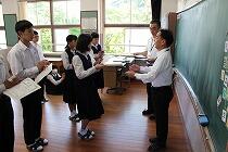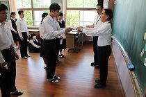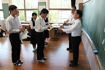先ず、先日実施しました第1回学力コンテスト(数学)で、最優秀賞(満点賞)をとった8名の生徒に賞状をおくりました。来月は第2回が行われます。さらに、頑張ってほしいと思います。残念ながら賞をとれなかった人も、けっして悔やんだりひるむことは、ありません。たまたま力が発揮できなかったり調子が悪かったり、緊張したり。大切なことは、努力を続けることです。