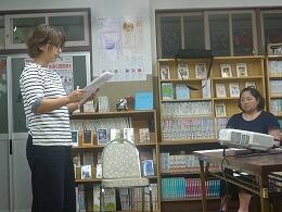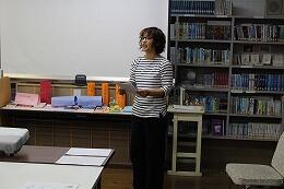 はじめに、家庭教育学級長の水谷麻美さんのあいさつ。本年度、みなさんで楽しく活動していきましょう、というお話がありました。