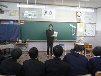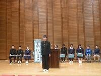 代表して、片地奏音さんが「中学校3年間で19回、ドリームジャンボ学園で講話を聞くことができたいへん良い経験になりました。須木中で本当によかった思います。」と、これまでを振り返っての感想を入れながら、お礼のあいさつを行ってくれました。