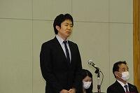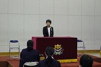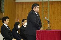 一人ひとりの職員が別れの言葉を述べた後、生徒会副会長の2年生 水谷 勇飛くんが