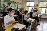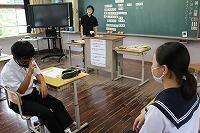 そんな中、1年生は9月1日の防災の日に、オンライン授業で岩手日報の新聞記者である鹿糠 敏和さんの講話を聞き、防災学習を行いました。東日本大震災を取材された記者の方のお話は、壮絶な災害現場を彷彿とさせる、大変危機感迫るものでした。授業の様子を宮崎日日新聞が取材に来られ、翌2日付の新聞で紹介されました。