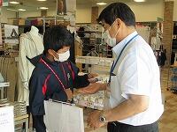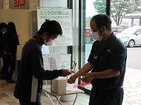 会議終了後、4校時の授業を見学していただき、新型コロナウイルス感染症対策を考えた給食配膳の様子を見ていただきました。例年はランチルームで全校生徒と職員で一緒に給食を食べるのですが、現在は各学級で給食を摂っているため、お1人ずつ各学年の教室に入っていただき、1人1人の間隔を空けた、コロナ対応の静かな給食時間を体験していただきました。