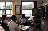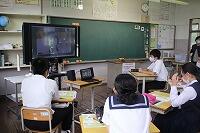 9月30日(水)の3,4校時に、本校3年生と島根県の海士中学校とのオンライン授業が行われました。海士中学校の職場体験学習の一貫で、海士町の観光スポットを中学生リポーターたちがリアルタイムで紹介する様子を、まるでテレビの旅番組を見ているような感覚で見学しました。事前に送られてきた海士特産のハーブティーやお菓子を一緒にいただきながら、楽しく交流活動を行いました。初めは戸惑いのあった3年生たちも、海士中学校の生徒たちの滑らかな話術のおかげですっかり馴染み、いつの間にか教室が大きな笑い声に包まれていました。