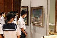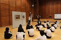 10月8日(木)に、宮崎県立美術館の絵画を鑑賞する移動鑑賞教室を、須木総合ふるさとセンターで行いました。県立美術館の方々が4つの絵を持ってきてくださり、画家の紹介や鑑賞の仕方を丁寧に説明してくださいました。宮崎県にゆかりのある方々の作品ばかりで、生徒たちも興味津々でじっくりと鑑賞していました。