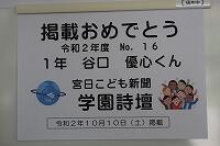 9月26日(土)付の宮日こども新聞に、2年福留 誠弥さんの短歌が掲載されました。