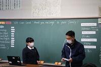 1月28日(木)の帰りの会の時間に、生徒の発信力を高める取組として、「めざせ!アナウンサー!!」の時間が始まりました。生徒がペアになり、1人がアナウンサーになったつもりで仮のニュース原稿を読み、もう1人が視聴者として感想や助言を言う、という取組です。2年生の教室では、ディレクターのごとく「3,2,1,スタート!」とかけ声をかけたり、カメラを構えてニュースのBGMを口ずさんだりして、自分たちでアレンジしながら楽しそうに取り組んでいました。はっきり、ゆっくり、相手に伝わりやすい話し方をみんなが身につけてくれることを期待しています。