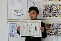 小牧くんは全校生活保体委員長としての顕著な活躍や校内ボランティア活動での熱心な取組、学習に対する積極的な姿勢などが評価され、生徒会は日頃の実直な活動に加え、昨年7月の熊本豪雨災害募金を生徒の手で企画・運営し、リモートで人吉市立人吉第二中学校への贈呈式を行い交流を図ったことなどが評価されての表彰となりました。