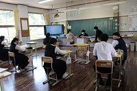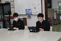 昨年度より導入されたタブレット学習が、今年度に入ってますます進んでいます。授業だけでなく、朝自習や水曜5校時終了後の須木るタイムにおいても、タイピング練習や動画の視聴など、多くの場面でタブレットの学習が入ってきています。最近は、雨の日の昼休みに校長室でタイピング練習をする生徒も出てきており、生徒の興味関心が高まってきている様子がうかがえます。生徒一人ひとりの今後の学力向上につながるよう、職員も日々勉強中です。