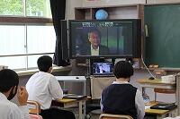 3年生の生徒たちは丸尾さんの話に熱心に聞き入り、質問コーナーでも臆することなく「リーゼントにしたことはありますか?」など率直な質問をして丸尾さんの笑いを誘っていました。現在のバリ島での素敵なお住まいをリモートで見ることができ、とても貴重な体験をさせていただきました。丸尾様、本当にありがとうございました。バリ島を訪れる機会があったら、ぜひおじゃまさせてください。