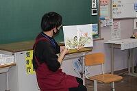 3年生はテストのため、残念ながら参加することができませんでしたが、1,2年生がお二人の講師の方々の読み聞かせを聴くことができました。今回は、市立図書館須木分館の山下様、読み聞かせボランティアグループ「あすなろ会」の片地様にお越しいただき、朝から絵本の世界に浸る素敵な時間を過ごさせていただきました。