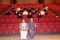 最後に生徒全員と記念撮影をして終了しました。記念の色紙もいただき、ありがたく玄関や教室に飾らせていただいています。桂 かい枝様、桂 福龍様、貴重な機会をいただき本当にありがとうございました。