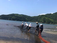 修学旅行(地引き網体験・13日午前)