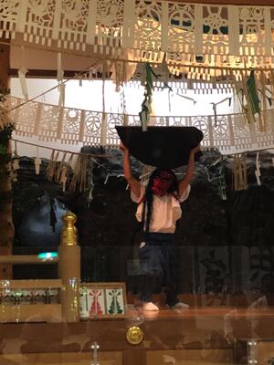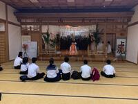 本日は朝8時40分より高千穂神社へ行きました。神社の参拝や夫婦杉をまわりました。その後は高千穂神楽を鑑賞しました。