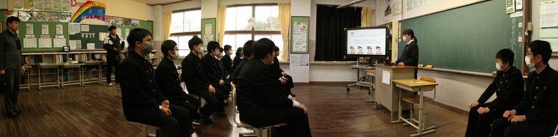 3年生が講師となり、パワーポイントを用いて高校入試に向けての様々なアドバイスを分かり易く伝えるとともに、生徒や先生方からの質問にも的確に丁寧に答えていました。