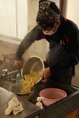 うどんは、粉をこね、寝かし、麺棒で延ばして切るという本格的なものでした。