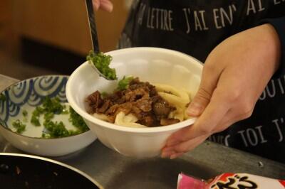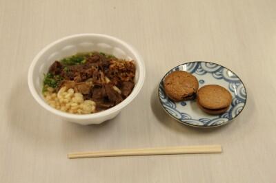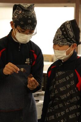 完成しました! 太麺で歯ごたえがあり、肉のうまみがとてもおいしいうどんでした。マカロンは焼け具合が最高で、チョコの味ととてもよく合っていました!。3年生の皆さんごちそうさまでした。