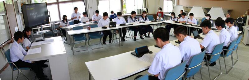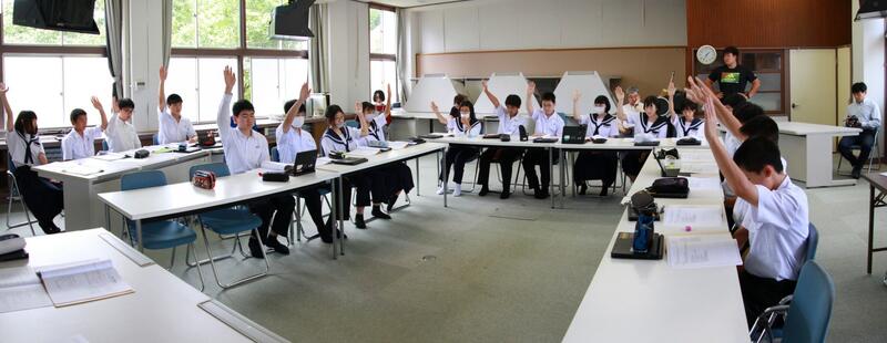 後半の討議では、休み時間のタブレット使用や持ち帰りについて、テスト期間や3年生の受験前の朝活の実施についての2つについて話し合いを行い、各学級から様々な意見が出されました。