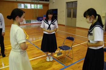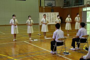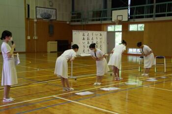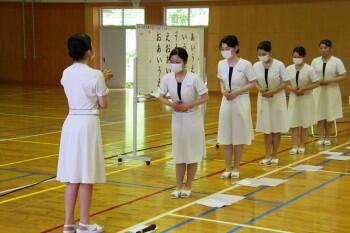 2,3年生は本日の5時間目に、日章学園高校の先生とトータルエステティック科の6名の生徒さんを講師に迎え、礼法について学習をしました。