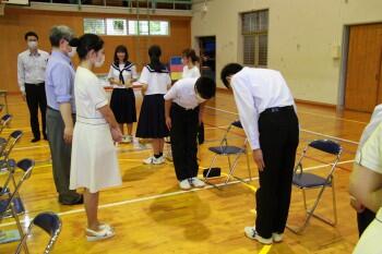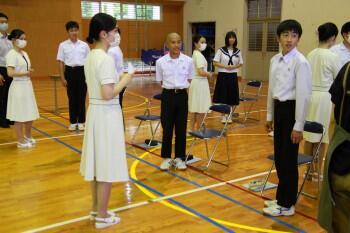 2年生は7月に職場体験学習を控え、3年生は受験に向けて挨拶の仕方を身に付ける大変良い機会となりました。