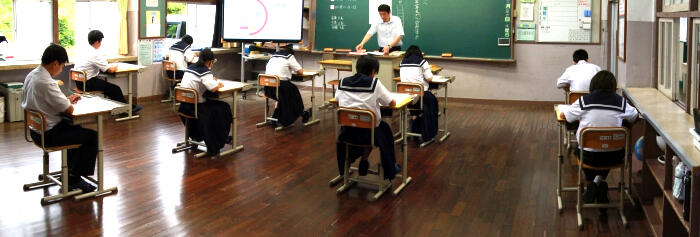 1年生は初めての校内テストです。集中して取り組んでいます。