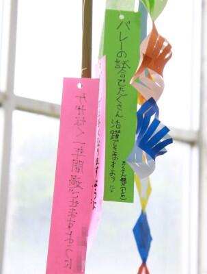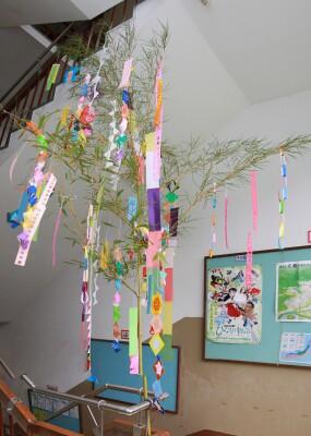 七夕に向けて、生徒たちの思いを書いた短冊と一緒に飾らせていただきます。