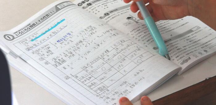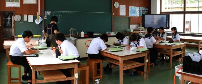 テスト直後の3時間目の1年生は理科に取り組んでいます。