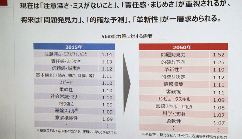 また、将来は「問題発見力」、「的確な予測」、「革新性」が一層求められるというお話もありました。