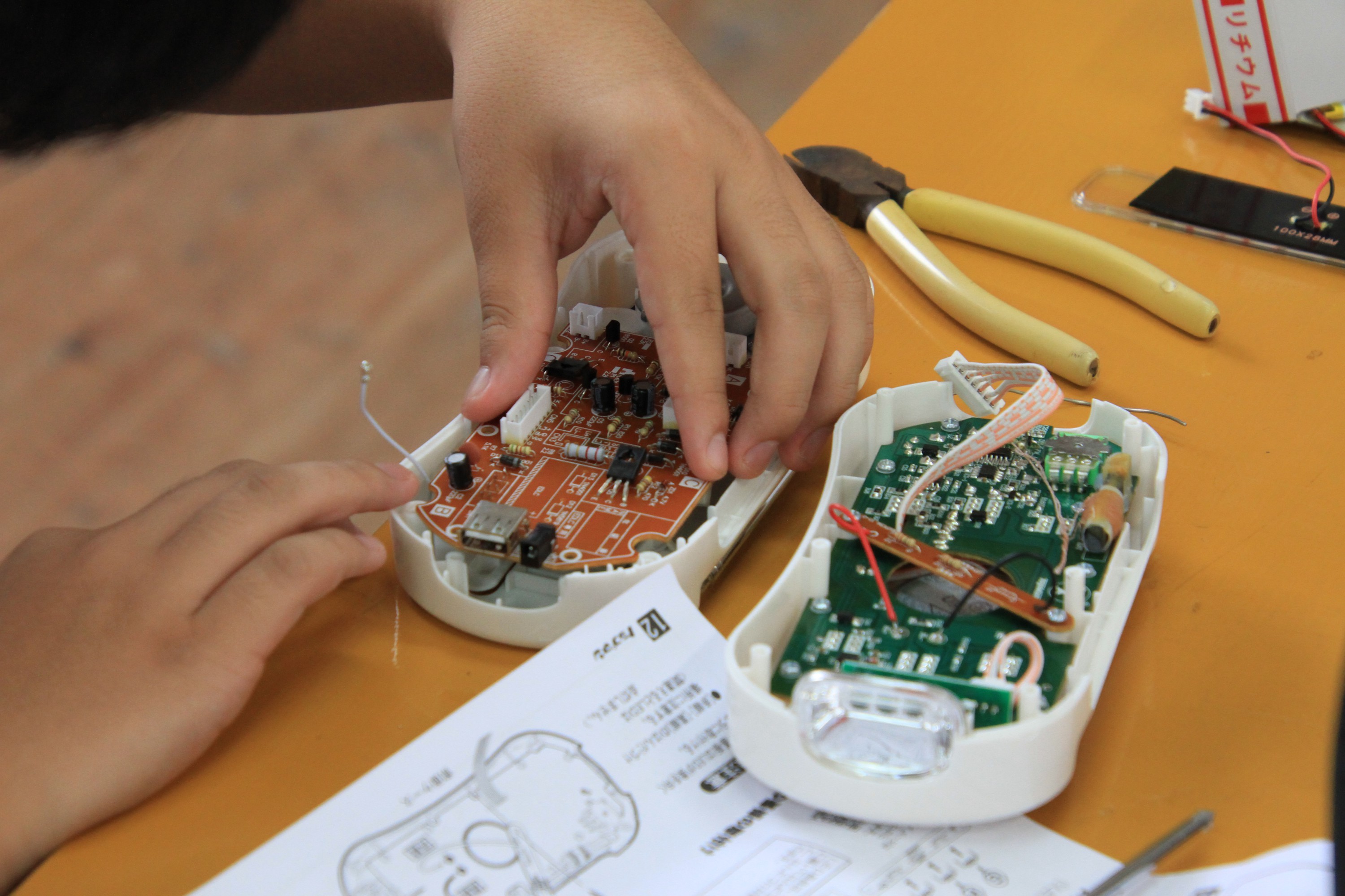 複雑な部品を半田付けしたり、導線をソケットに差し込んだ入りしています。部品が小さいため、なかなか大変です。