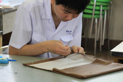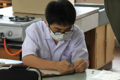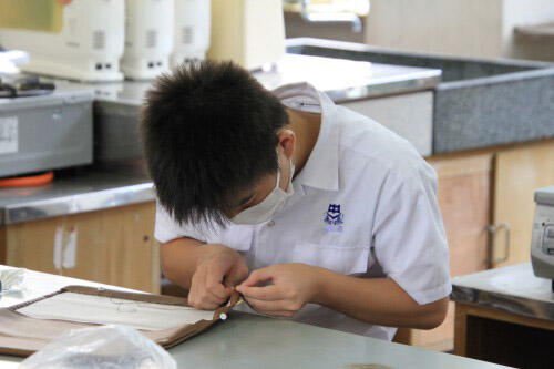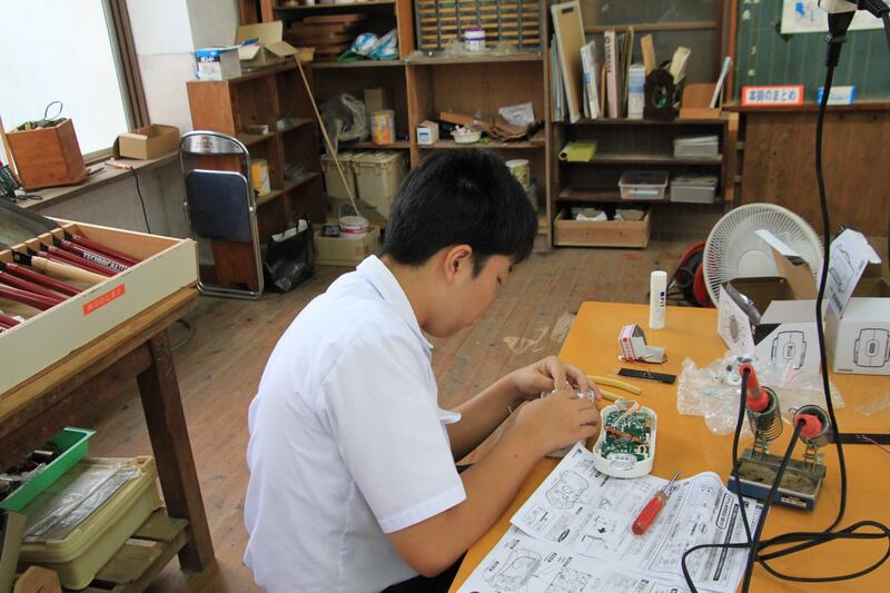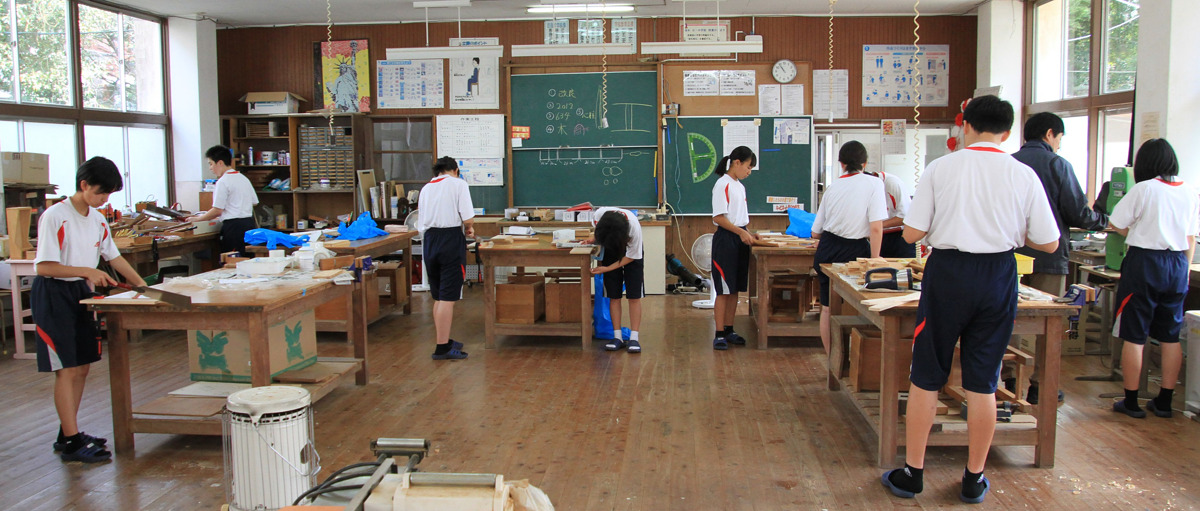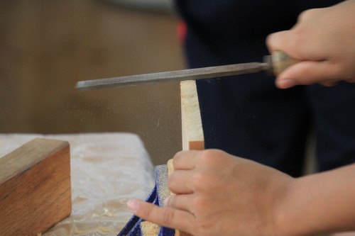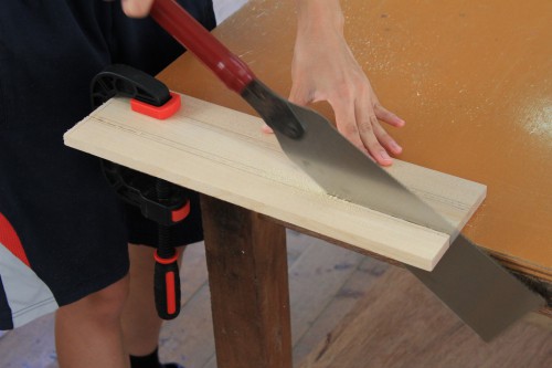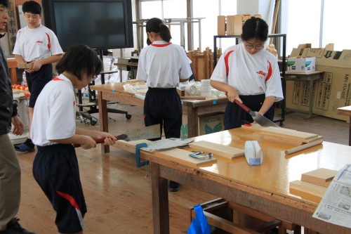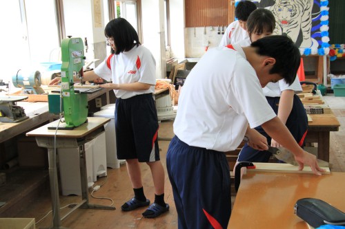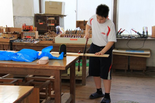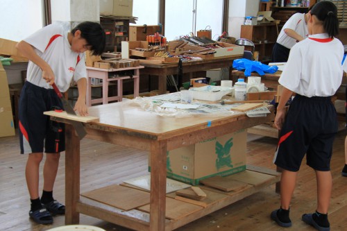 木工の内容で、みんな板を鋸で切ったり、やすりで磨いたりと一生懸命に作業をしていました。