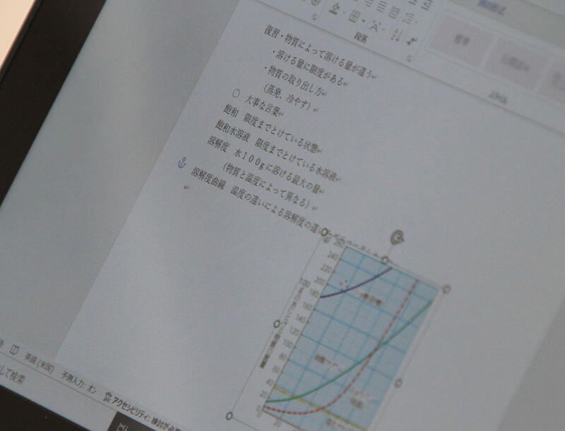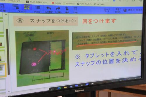 学習のまとめ等を、タブレットを使って行うための説明が行われていました。ちょうど図形を貼り付ける手順の説明をしていました。