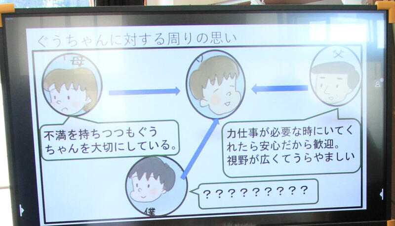 下の写真では、「名残惜しい」について意見を出し合っています。
