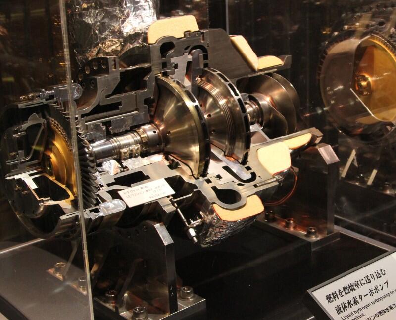 下の写真はH2についている液体水素をタンクから噴射口の根元にある燃焼室に送るターボポンプ。設計寿命は2000秒。