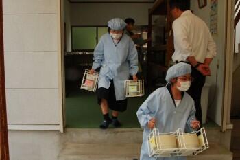 2か月の期間を経て、1年生は中学校初めての給食当番です。