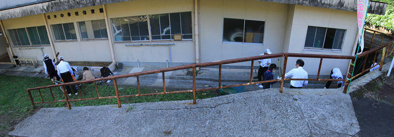 全員で手分けをして作業することで、校舎周りの溝がずいぶんきれいになりました。
