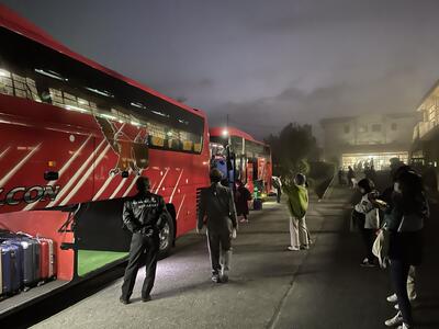 「自主研修」と言っていながら、気付いたら私が先頭になり、バスに乗り込むことに。後ろを振り返ったら、ほとんどいるではないか!