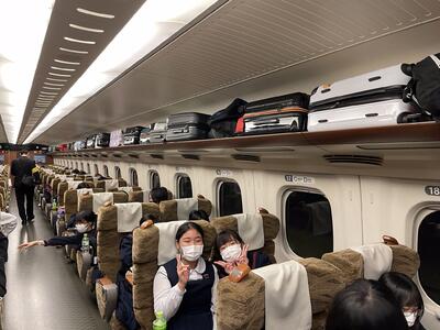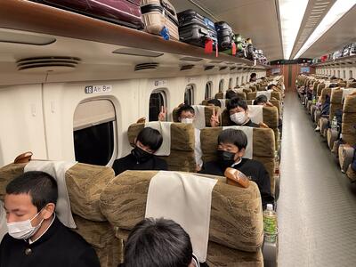 人生初の「新幹線」「路面電車」そして、平和学習で疲れたせいかぐっすり眠った生徒。遅くまで起きていて注意された?生徒。それぞれだったのか?