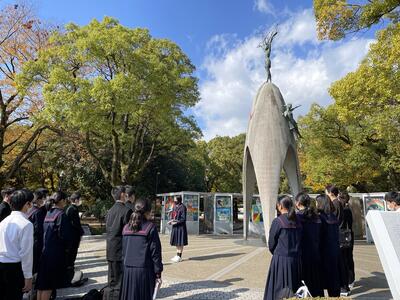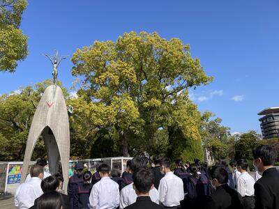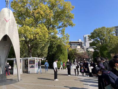 修学旅行1日目、最後は、ガイドボランティアの方々により、平和公園の説明をしていただきました。