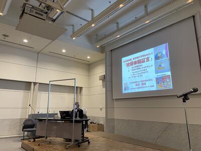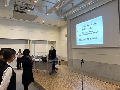 ご自身の被爆体験や病気との闘いの中で今があるという、これまでの人生、そして、原爆の本当の恐ろしさを科学的な数値や実際の映像、残された遺品などから、伝えてくださいました。涙ながらにお話いただき、胸が詰まりそうになりました。「私たちにできることは、君たちにできることは、日常行動です。私たちは原爆の恐ろしさを伝えます。皆さんは、いじめ、暴力、戦争に反対し、みんな違って、みんないい」人も国も社会も違いを受け入れて話し合いましょう。あらゆる国の人々を尊重し、ずっと地球と暮らす思いをもって活動することが、世界平和につながります。核なき世界を。」と、沢山のことを伝え説いてて」」くださいました。