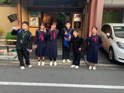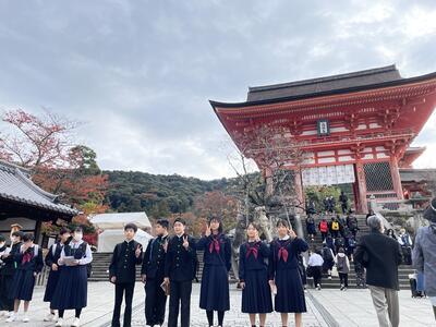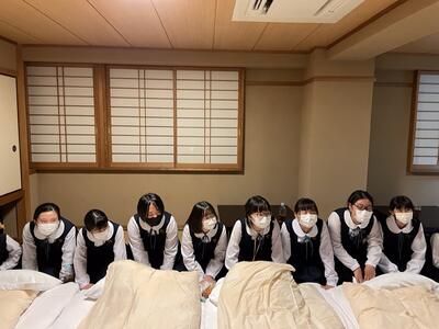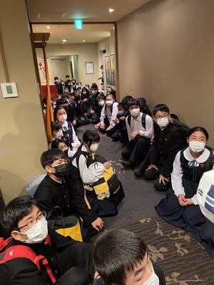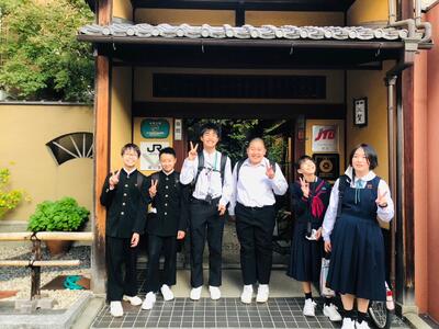 飯野中学校修学旅行一行、1日の行程を無事に終え、宿泊先である京都の旅館に到着いたしました。