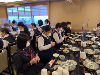 「私たちの料理を残さず食べていただきありがとうございました。厨房も綺麗に食べていただき、本当に喜んでおりました。今日が最終日でUSJで楽しんできてほしいですが、家に帰り着くまでが修学旅行です。どうぞお気をつけていってらっしゃい。また京都へおいでやす!」とあたたかいお言葉をいただきました。