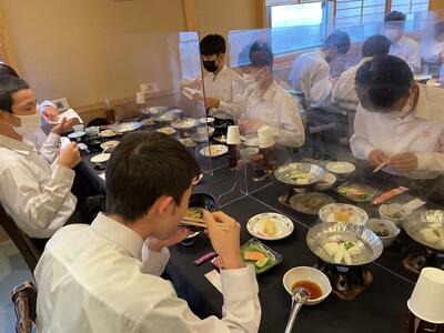 朝は私と伊藤先生から感染対策の徹底や本日の注意点などをお話しして、朝食をいただきました。