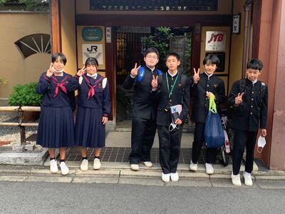 「今、北、南どっちに向かっているの?この通りって何通り?」と、碁盤の目のような作りになっている京都の地形に慣れず、地図を広げてウロウロしていると、付近にいた大人の方が、声をかけてくださり、教えてくださったとか。最後は、gpsで場所を確認しながら阿蘇品先生が、探しに行ってくださり、「先生、ここです!!」と駆け寄って、涙の合流!「本当によかった。。。。」
