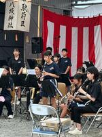 8月4日(日)に飯野駅前祇園祭が行われ、飯野中生徒会メンバーと飯野中吹奏楽部・加久藤中吹奏楽部のメンバー等が催しに参加しました。