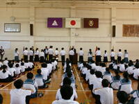 22日(金)は2学期前期授業終了日でした。今朝の冷え込みは厳しく気温も氷点下でしたので、寒さ対策と感染症拡大防止の視点から、体育館での集会を各学級でに集会に変更して行いました。集会の中で1月8日(月)宮崎市で開催される、第14回市町村駅伝競走大会に選抜された5人の生徒の壮行会(紹介)を行いました。選手を代表して加治佐くんが、決意を立派に述べてくれました。ベストを尽くしてくれるものと期待が膨らみました。
