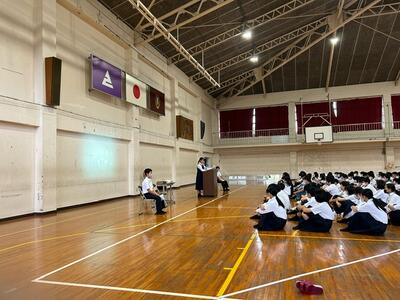 「ちがい」≠「間違い」⇒これからの社会を生き抜くことを考えると、自分とは「ちがう」意見を尊重することが大切であること、そこからの学びが自分自身(自分自身の考え)を広げてくれること等を教えてくださいました。1年生にとっては貴重な経験となりました。ありがとうございました。