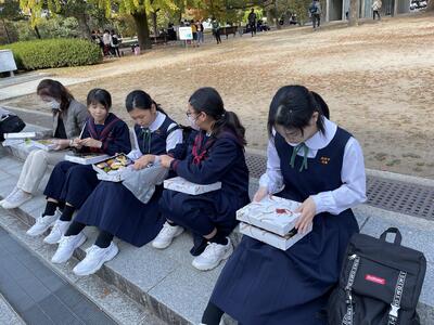 講和の後は、ようやくお昼のおべんとう!「ナイン弁当」を公園でいただきました。