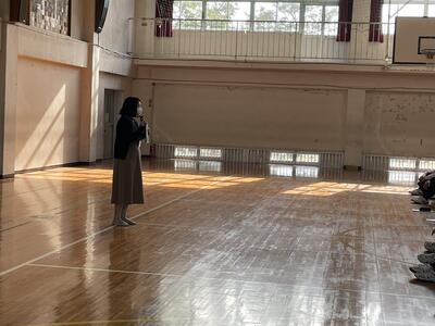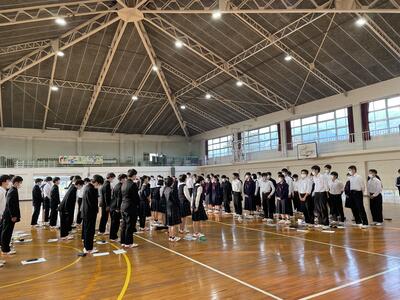 「楽しむだけでは無く、目的地の文化や歴史に触れ、理解を深める修学旅行にしましょう。ルールを守り分別ある行動を心掛けましょう。感染対策を心掛けてほしいと思います。事故や健康に気をつけて、みんなで最高の思い出を作りましょう。」と力強いあいさつがありました。