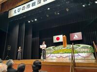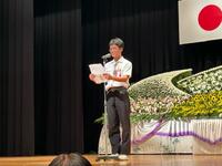 令和6年度えびの市戦没者追悼式が、16日(金)午前中にえびの市文化センターで行われました。式典の平和への誓いで本校3年生田中檀さんが、「平和な世界へ向けて」と題して発表をしてくれました。田中さんは、曾祖父から特攻隊の話を聞き、戦時中や戦後の生活が大変であったことやえびの市内でも多くの方々が戦死されていることを知り、今も世界のあちらこちらで起こっている戦争を無くし、平和な世界に向けて、自分にできることに取り組んでいきたいと堂々と発表してくれました。