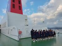 〇 朝は甲板に出て、強風の中ではありましたが記念撮影をすることができました。おそらく生徒には初めての経験だったのではないでしょうか。