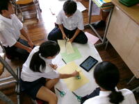 1年生は、これまで地元「えびの」について学んできました。文化祭当日は、学んだことを発表する予定です。今日は、集めた内容をタブレットを使ってまとめたり、模造紙に下書きをしたりしていました。